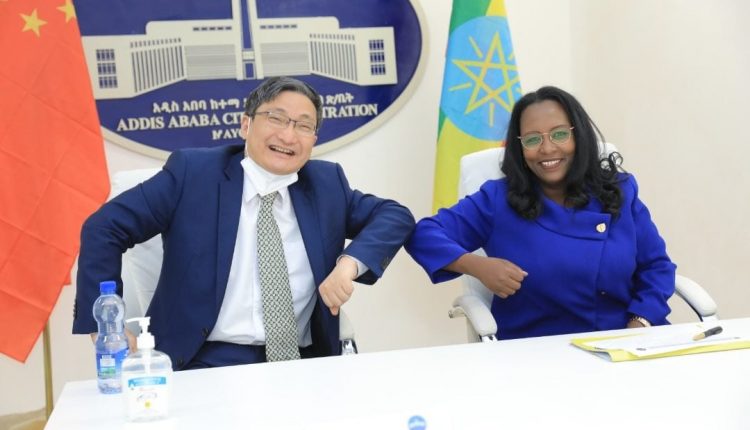 Aadde Adaanach Abeebeen proojektoota Gamtaa Afrikaa Finfinneetti ijaarramaan ilaalchisee Gamtaa Afrikaatti ambaasaaddara Chaayinaa waliin mari’atan
