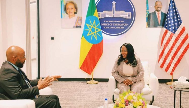 Finfinnee, Ebla 8, 2016 (FBC) – Kaantibaan magaalaa Finfinnee Aadde Adaanach Abeebeen Itiyoophiyaatti Ambaasaaddara Ameerikaa Erviin Joozee Maasingaa dhimmoota waloorratti mari’ataniiru.