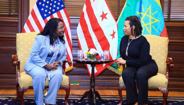 Finfinnee, Caamsaa 19 ,2015 (FBC)- Kantiibaan magaalaa Finfinnee Aadde Adaanech Abeebeen kantiibaa magaalaa Waashingitan DC Muuriiyeel Boowuzar waliin mari’atan.