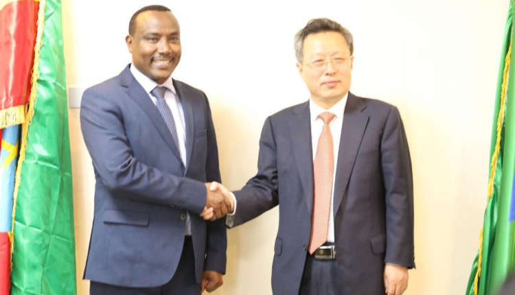 Dooktar Injinar Nagaash Wageeshoon Ityoophiyaatti Ambaasaaddara Chaayinaa Zaahoo Zhiyuwaan waliin waajjirasaaniitti mari’ataniiru.