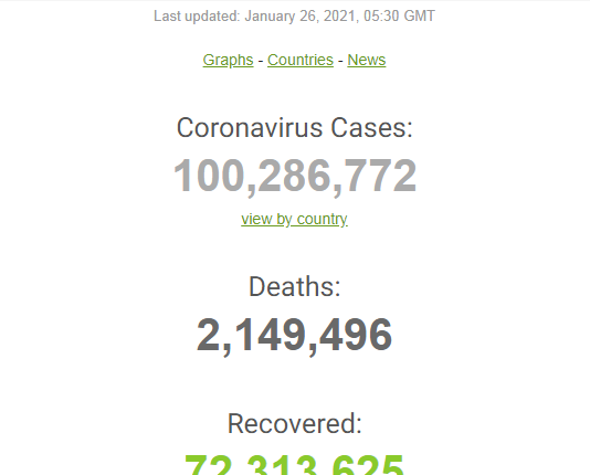 Addunyaarratti lakkoofsi namoota covid-19 qabamanii miiliyoona 100 darbe