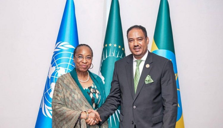 Ambaasaaddar Misgaanuu Argaan Itti aantuu Daayrektera Waliigalaa Dhaabbata Misooma Indaastirii Mootummoota Gamtoomanii waliin mari’atan