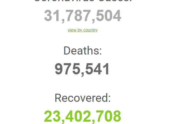 Addunyarratti namoonni miiliyoonni 31 ol vaayrasichaan yoo qabaman, kumni dhibbi 9 kumi 75 ol lubbuu isaanii dhabaniiru.