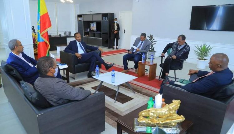 Finfinnee, Waxabajjii 24, 2013 (FBC) – Ministirri Ministeera Daldalaa fi Indaastirii obbo Malaakuu Allebal Baankii Misoomaa Afrikaatti Daayreektera sagantaa Kaantirii Ityoophiyaa fi itti gaafatamaa giddugala Afrikaa Bahaa Dooktar Abduul Kaamaaraa waliin mari’ataniiru.