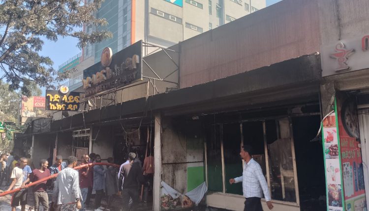Finfinnee, Guraandhala 7, 2015 (FBC)- Balaan ibbiddaa magaalaa Finfinnee kutaa magaalaa Lammii Kuraa aanaa 8 Yuunivarsiitii Siiviil Sarfisii fuulduratti guyyaa keessaa naannoo sa’atii 8:00tti mudate manneen daldalaa 8 barbadeessuu Komishiniin Hoggansa Sodaa Balaafi Ibiddaa magaalichaa beeksise.