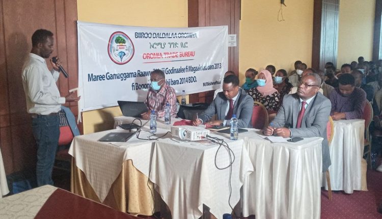 Biiroon daldalaa Oromiyaa gamaaggama raawwii hojii godinaalee fi magaalota Oromiyaa bara 2013 fi boqonnaa qophii bara 2014 irratti xiyyeeffachuun magaalaa Bishooftuutti marii geggeessaa jira.