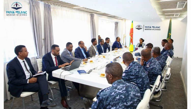 Ministirri Ministeera Haqaa Haannaa Ari’aayaasillaaseen hoggantoota Komishinii Poolisii Federaalaa waliin dhimmoota bu’a qabeessummaa bulchiinsa haqa yakkaa guddisuu danda’an irratti mari’ataniiru.