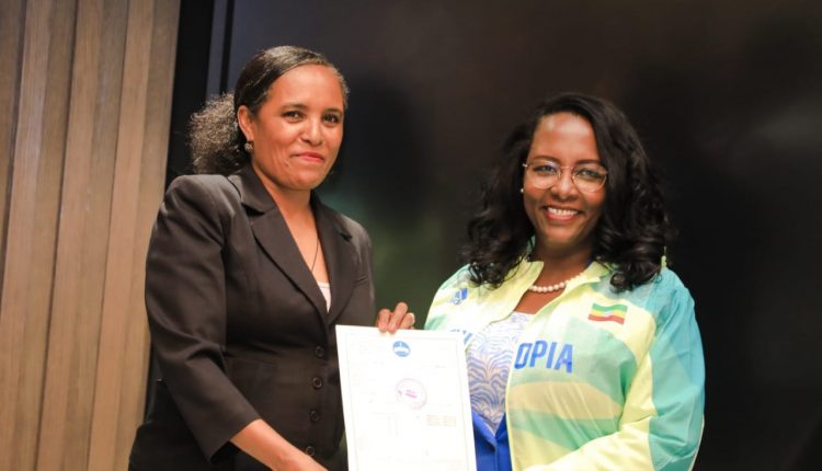 Finfinnee, Sadaasa 21, 2015(FBC)- Bulchiinsi magaalaa Finfinnee Shaampiyoonaa Atileetiksii Addunyaa Origoon irratti atileetota injifannoo galmeessaniif kaartaa lafaa dabarsee kennuu Kantiibaan Magaalichaa Aadde Adaanach Abeebeen ibsan.