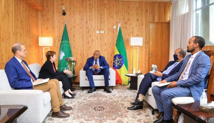 Ministir Deetaan Ministeera Dhimma Alaa Ambaasaadar Tasfaayee Yilmaan Ityoophiyaatti hojii raawwachiiftuu Imbaasii Ameerikaa Ambaasaaddar Tireesii An Jaakoobsan waliin mari’ataniiru.