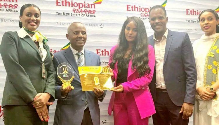 Hojii Raawwachiisaa Olaanaan Daandii Qilleensaa Itiyoophiyaa Obbo Masfin Xaasew badhaasicha fudhachuu isaanii ragaan fuula daandii qilleensichaarraa argame ni mul’isa.
