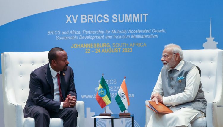 Dooktar Abiy Yaa’ii BRICS Afrikaa Kibbatti gaggeeffamaa jiru cinaatti Muummee Ministiraa Hindi Naraandiraa Moodii waliin marii gamlamee taasisaniiru.