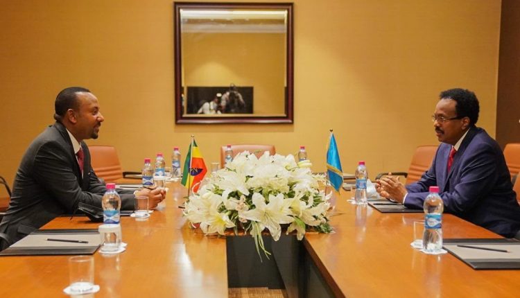 Finfinnee, Muddee 11, 2013 (FBC) – Muummeen Minsitiraa FDRI Dooktar Abiy Ahimad Preezdaantii Soomaaliyaa Mahaammad Faarmaajoo waliin mari’ataniiru.