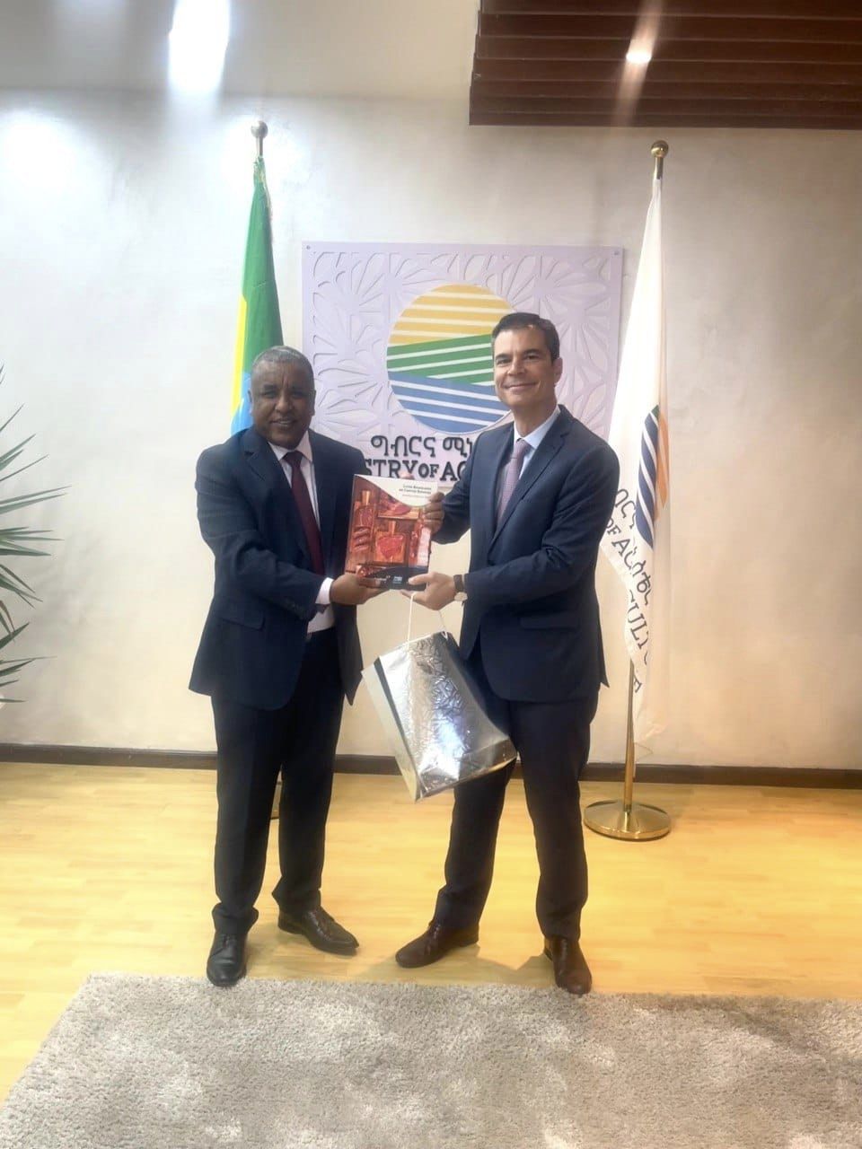 Finfinnee, Bitootessa 18, 2015(FBC)- Ministirri Ministeera Qonnaa Dooktar Girmaa Amanteen Ityoophiyaatti Ambaasaaddara Biraaziil Jaandiir Feeriraa waliin mari’ataniiru.