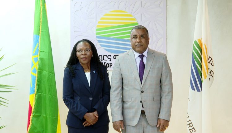 Finfinnee, Guraandhala 1, 2015(FBC)- Ministirri Ministeera Qonnaa Dooktar Girmaa Amanteen Ityoophiyaatti Bakka Buutuu Dhaabbata Nyaataafi Qonnaa Addunyaa Faaraay Ziimoodiizii waliin mari’ataniiru.