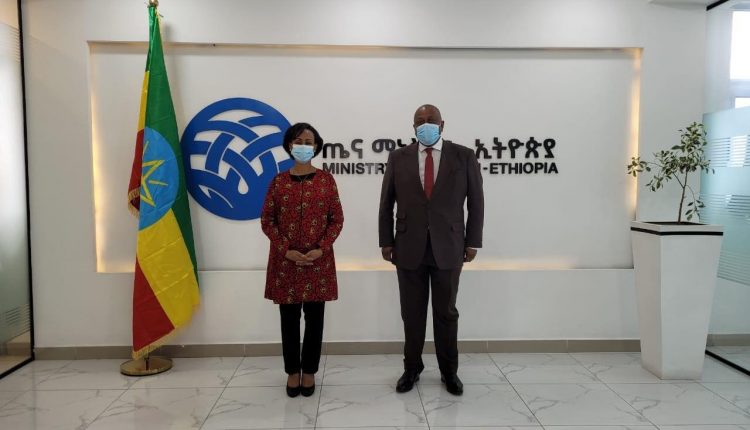 Finfinnee, Eebila 20, 2014 (FBC) – Ministirri Ministeera Fayyaa Dooktar Liyaa Taaddasaan Ministira Ministeera Fayyaa Riippaabilika Dimookraatawaa Koongoo Jiyaan Zhaak Mibuungaanii waliin mari’ataniiru.
