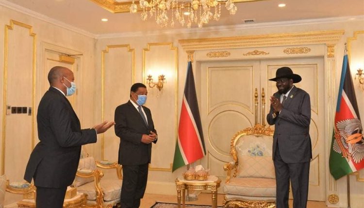 Ergamaan addaa Muummee Ministiraa Dooktar Abiy Ahimadii fi Preezdaantiin FDRI duraanii Dooktar Mulaatuu Tashoomaa Preezdaantii Sudaan Kibbaa Salvaakiir waliin marii’atan.