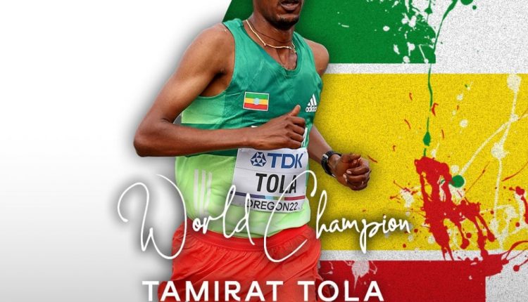 Finfinnee, Adoolessa 10, 2014 ( FBC)-  Shaampiyoonaa Atleetiksii Addunyaa 18ffaa Ameerikaa Ooriiganitti gaggeeffamaa jiruun Atileet Taammiraat Tolaa Maaraatooniin Warqee 2ffaa Ityoophiyaaf argamsiise.