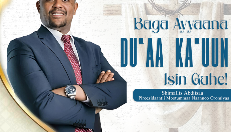 Du’aa ka’uun Iyyesuus Kiristoos kakuu haaraa ilmaan namootaaf kan ijaaredha – Pireezidaanti Shimallis Abdiisaa