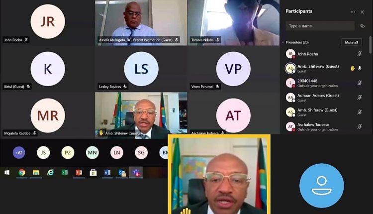 Afrikaa kibbaatti angaa’aan guutuu Ityoophiyaa ambaasaaddar Dooktar Shifarraaw Taklamaariyaam hariiroo bizinasii fi diinagdee biyyotaa lamaan gidduu jiru sadarkaa olaanaatti ceesisuuf kan dandeessisaan yaada adda addaa dhiyeessaniiru.
