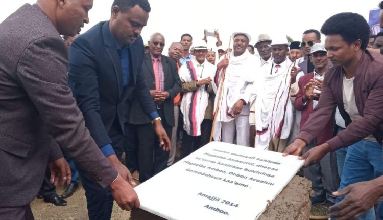 Dabalataan dhagaan bu’uuraa ijaarsa gamoo Waajjira Bulchiinsaa magalaa Amboo Abbaa Darbii 5 kan birrii miiliyoona dhibba 2n ijaaramu uummataaf ifoomeera.