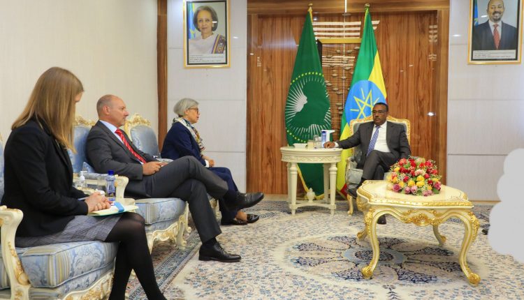 Finfinnee, Caamsaa 6, 2014 (FBC) – Itti aanaan Muummeen Ministiraa fi Ministirri Ministeera Dhimma Alaa Obbo Dammaqaa Mokkonniin Gamtaa Awurooppaatti Ergamtuu addaa Gaanfa Afrikaa Dooktar Aneet Weebaariin waliin mari’ataniiru.