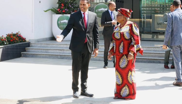 Dooktar Kaasahuun, koree haalaa mijeessituu biroo waliin ta’uun Daayrektara Olaanaa Dhaabbata Daldalaa Addunyaa Nigooz Okoonjoo waliin mari’ataniiru.