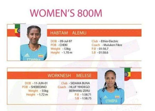 Fiigicha gulaallii meetira 800 galgala sa’aatii 3:25 irratti gaggeeffamu kanarratti Atleet Warqinash Mallasee fi Haabtaam Alamuun Itiyoophiyaa bakka bu’uun ni hirmaatu.