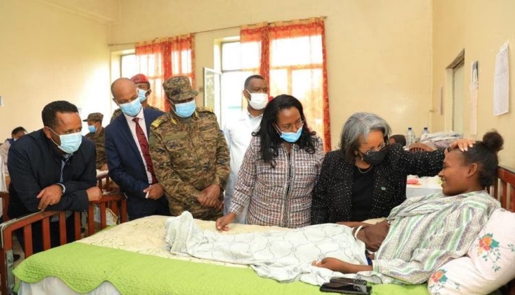 Finfinnee, Qaammee 4, 2013 (FBC)- Preezdaant FDRI Saahiwarq Zawdee fi itti aantuu kantiibaa magaalaa Finfinnee aadde Adaanach Abeebee waliin ta’uun duula olaantummaa seeraatin misensoota raayyaa ittisa biyyaa miidhaan irraa gahee hospitalaa Xoor Haayiloochitti yaalarratti argaman daawwataniiru.