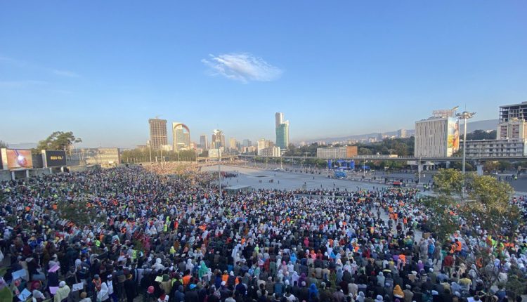 Finfinnee, Onkololeessa 12, 2015 (FBC)- Mata duree “Ityoophiyaaf nan dhaabbadhaa; sagalee koo nan dhageessisa” jedhuun hiriirrii ummataa waamame hirmaannaa miliyoonotaan dammaqinaan karaa nagaan gaggeeffamuu Bulchiinsi Magaalaa Finfinnee beeksiseera.