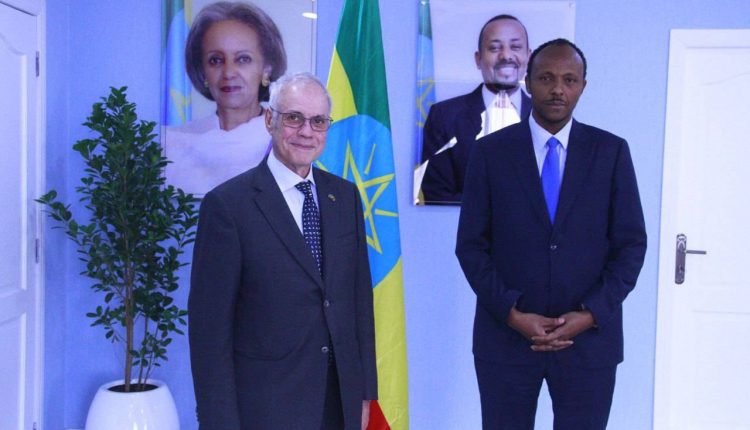 Ministirri Ministeera Bishaanii fi Inarjii Dooktar Injinar Habtaamuu Ittafaa fi hoggantoonni olaanoo Ministeerichaa Ityoophiyaatti Ambaasaaddara Biraaziil Luuwiiz Eediwaardoo waliin mari’ataniiru.