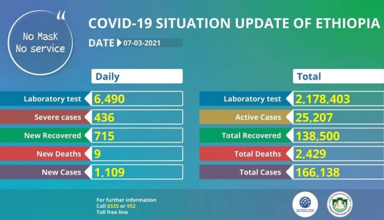 Sa’aatii 24 darbetti qorannoo laabraatoorii namoota 6,490 gaggeeffameen vaayrasichi namoota 1,109 irratti argamuu Ministeerri Fayyaa beeksiseera.