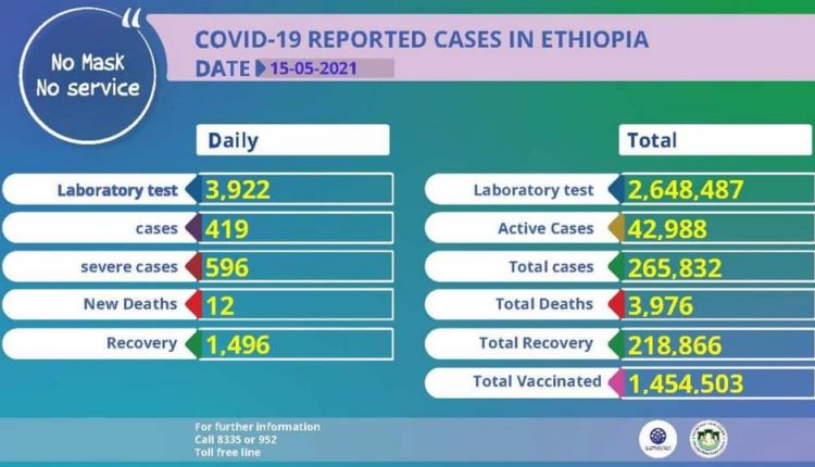 Finfinnee, Caamsaa 7, 2013 (FBC) – Gabaasa qorannoo sa’aatii 24 darbeetiin namoonni dabalataa 419 vaayrasii koroonaan yoo qabaman, lubbuun namoota 12 darbeera.