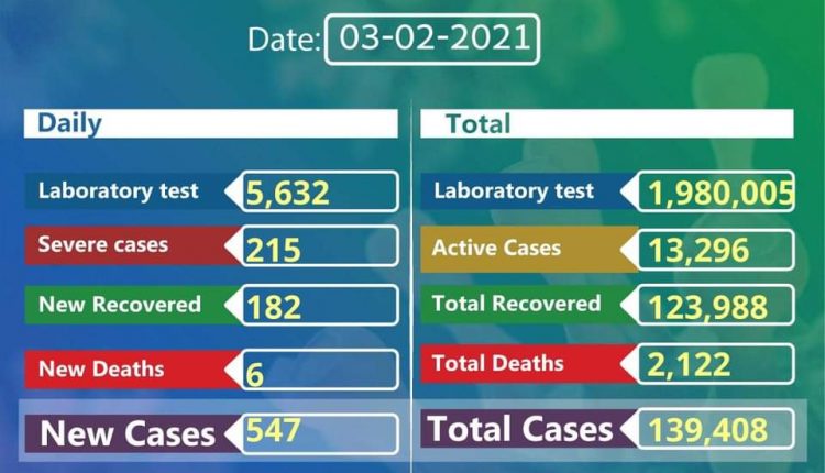 Finfinnee, Amajjii 26, 2013 (FBC) – Gabaasa qorannoo sa’aatii 24 darbeetiin namoonni dabalataa 547 vaayrasii koroonaan yoo qabaman,lubbuun namoota 6 darbeera.