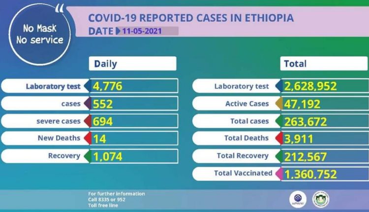 Finfinnee, Caamsaa 3, 2013 (FBC) – Gabaasa qorannoo sa’aatii 24 darbeetiin namoonni dabalataa 552 vaayrasii koroonaan yoo qabaman, lubbuun namoota 14 darbeera.