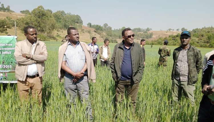 Finfinnee, Amajjii 24, 2015(FBC)- Jilli Ittaanaa Pireezidaantii naannoo Oromiyaa Obbo Awwaluu Abdiin durfamu Godina Wallagga Bahaa aanaa Leeqaa Dullachaatti oomisha qamadii bonee daawwate.