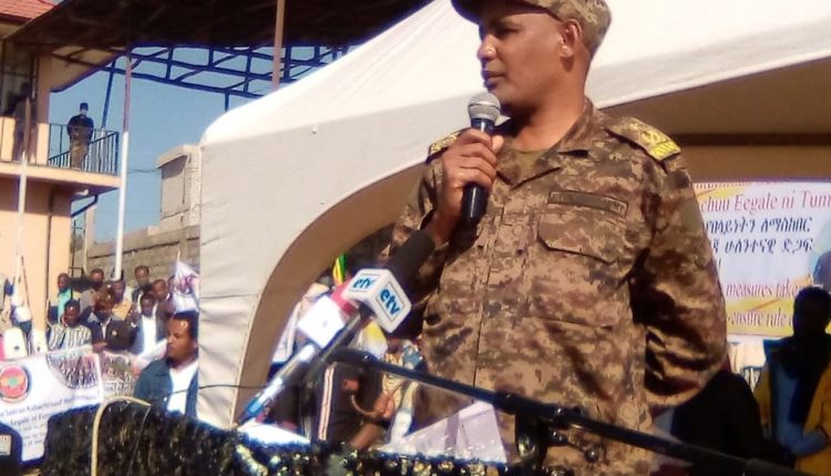 Raayyaa Ittisa Biyyaatti Ajajaan kutaa waraana Dajan B/Jeneraal Gizaaw Uumaa deeggarsa ummanni Raayyaa Ittisa Biyyaatiif taasiseef galateeffataniiru.