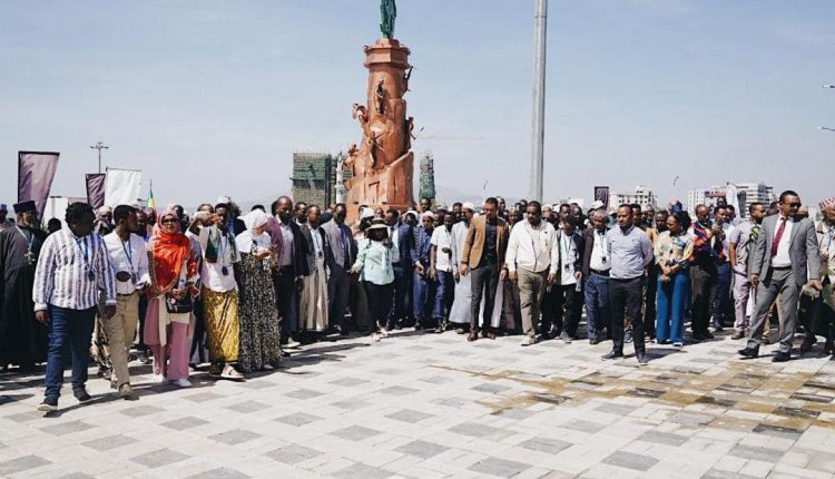 Hirmaattonni daawwannichaa Yaadannoon Injifannoo Adwaa sadarkaa Itiyoophiyaanota abbaa injifannoo ummatootaa gurraachaa ta’an gituun ijaaramuutti gammachuu isaanitti dhagaamee ibsuu ragaan Waajjira Kantiibaarraa argame ni mul’isa.
