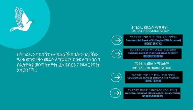 Mootummaan lammiilee Beenshaanguul Guumuuzii fi Tigraayitti qa’ee fi qabeenya isaanirraa buqqa’an deebisee dhaabuuf lakkoofsa herreega Baankii deeggarsa walitti qabuuf ooluu ifoomseera.