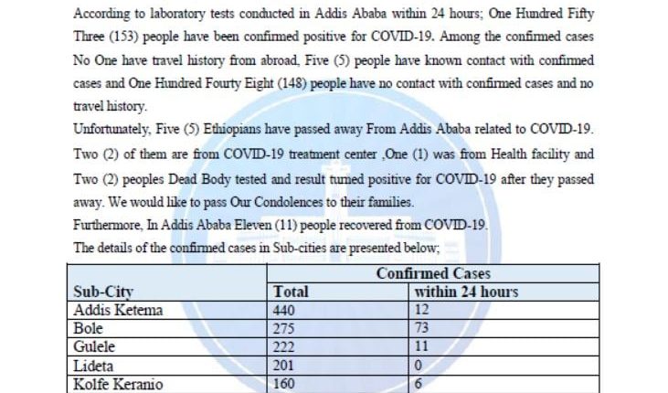 Qorannaa sa’aa 24 darbeetin namoota 153 irratti vaayrasiin koroonaa argamu Biirichi beeksiseera.
