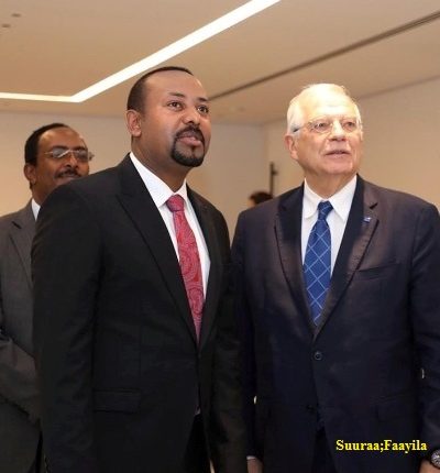 Finfinnee, Bitootessa 22, 2012 (FBC) – Muummee ministiraa Dooktar Abiy Ahimad bakka bu’aa olaanaa dhimma alaa fi imaammata nageenyaa Gamtaa Awrooppaa fi itti aanaa preezdaantii koomiishinii gamtichaa Jooseef Booreel waliin mari’atan.