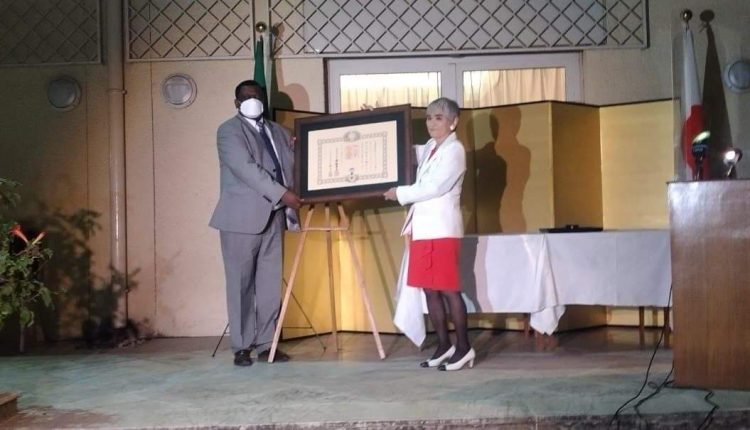 Finfinnee, Amajjii 6, 2013 (FBC) – Mootummaan Jaappaaniin qaamolee hariiroo biyyoota lamaanii cimsuuf gumaachaa taasiisaniif kan laatu miseensa Mana Maree Bakka Bu’oota kan ta’an obbo Hordofaa Baqqalaa Nishaanii kabajaa badhaaseera.