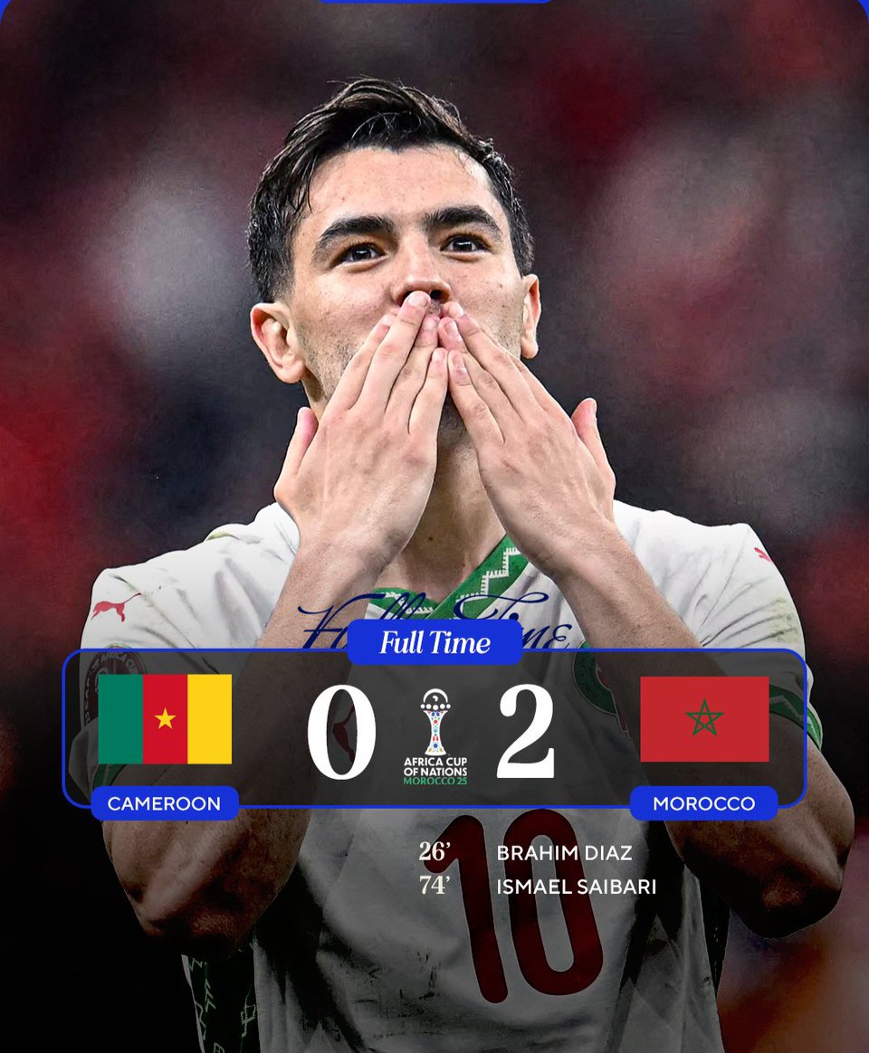 Tapha sa’aatii 4 irraa eegalee taphatame kanaan Moorookoon kubbaa to’achuu irraa eegalee caalmaa fudhachuun boqonnaa dura daqiiqaa 26ffaa irratti Biraahim Diyaaz fi boqonnaa booda ammoo Ismaa’el Sa’ibaarii daqiiqaa 74ffaa irratti galchii lakkoofsisuun 2 fi 0’n Kaameruuniin injifatteetti.