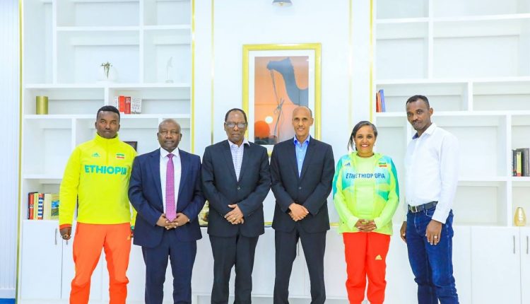 Maricharratti Ministir Deetaan Ministeera Aadaa fi Ispoortii Ambaasaaddar Masfin Charinnat, Pireezidaantii Federeeshinii Atleetiksii Ityoophiyaan Gargaartuu Komishinaraa Atleet Daraartuu Tulluu fi Pireezidaantiin Waldaa Federeeshinii Atleetoota Ityoophiyaa Komishinar Maarqoos Gannateen argamuu ragaan Ministeera Aadaa fi Ispoortirraa argame ni mul’isa.