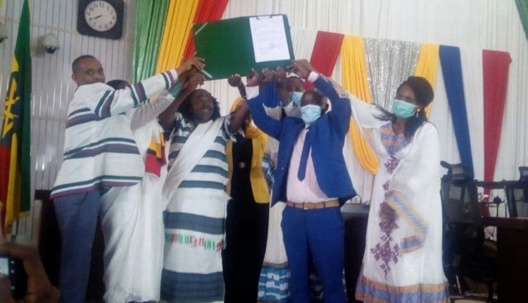 Manni Maree Naannoo Kibbaa yaa’ii ariifachiisaa 1ffaa bara hojii 6ffaa gaggeesseen gabaasa gaaffii adeemsa naannoo ta’uu Ummattoota Kibba Lixa Ityoophiyaa dhiyaaterratti erga mari’atee booda walharkaa fuudhinsi aangoo taasiifameera.