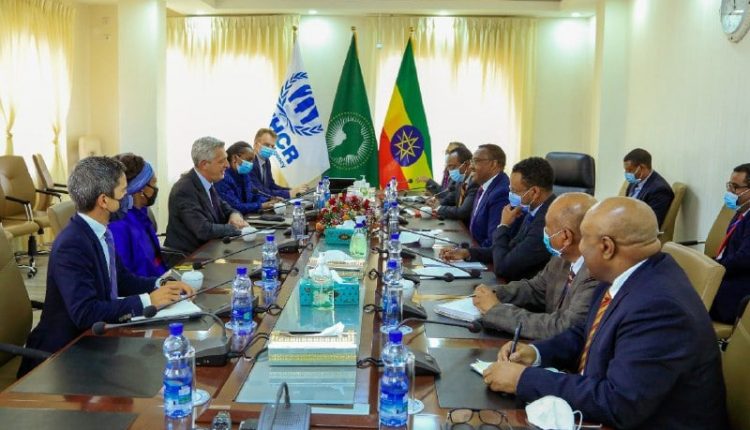 Finfinnee, Amajjii 24, 2013 (FBC) – Itti aanaan Muummee Ministiraa fi Ministirri Ministeera Dhimma Alaa obbo Dammaqaa Makonniin Dhaabbata Mootummoota Gamtoomaniitti Komishinara olaanaa dhimmoota Godaantootaa Filiippoo Giraandee waliin mari’ataniiru.
