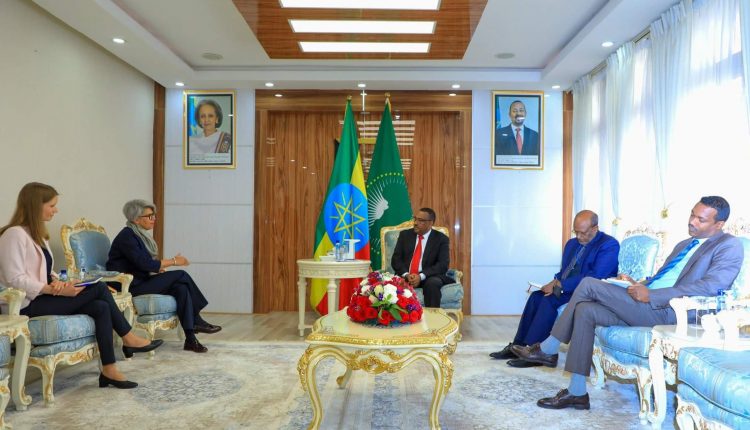 Finfinnee, Adoolessa 21, 2014 (FBC) – Itti Aanaan Muummee Ministiraa fi Ministirri Ministeera Dhimma Alaa Obbo Dammaqaa Makonniin Gaanfa Afrikaatti bakka buutuu ergamaa Addaa Gamtaa Awurooppaa Dooktar Aneet Weebar waliin mari’ataniiru.