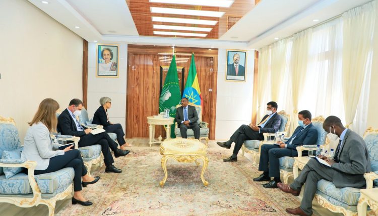 Finfinnee, Gurraandhala 2, 2014 (FBC) – Itti aanaan Muummee Ministiraa fi Ministirri Ministeera Dhimma Alaa obbo Dammaqaa Makonniin Gaanfa Afrikaatti jila ergamaa addaa Gamtaa Awurooppaa Dooktar Aneettaa Weebariin durfamu waliin dhimmoota haala yeroo biyyeessaarratti mari’ataniiru.