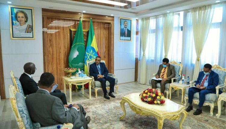 Finfinnee, Sadaasa 22, 2014 (FBC) – Itti aanaan Muummeen Ministiraa fi Ministirri Ministeera Dhimma Alaa obbo Dammaqaa Makonniin tyoophiyaa, Eertiraa,Sudaanii fi Sudaan Kibbaatti daayreektara Baankii Addunyaa Oosmaan Diyoon waliin mari’ataniiru.