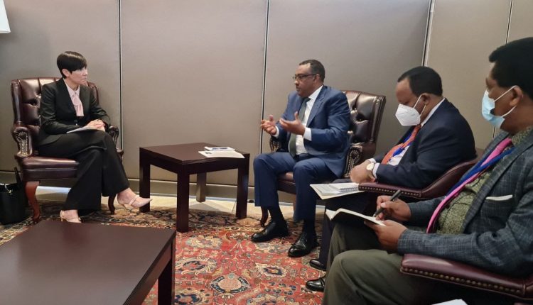 Finfinnee, Fulbaana 13, 2014 (FBC) – Itti aanaan Muummee Ministiraa fi Ministirri Ministeera Dhimma Alaa obbo Dammaqaa Makonniin Ministira Ministeera Dhimma Alaa Noorwey Maarii Eeriiksan Sureeyid waliin Niwuu Yoorkitti mari’ataniiru.