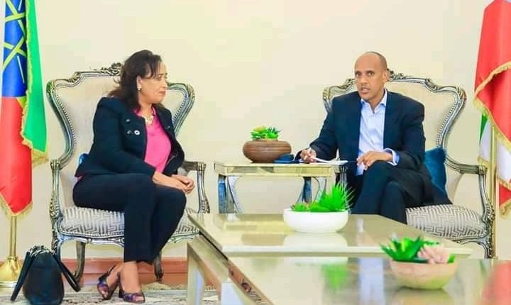 Preezdaantichi jila daayreektara biiroo olaanaa tajaajila proojektii Dhaabbata Mootummoota Gamtoomanii fi bakka buutuu Gamtaa Afrikaa Warqinaash Mokkonniin durfamu waajjira isaaniitti simachuun naannichatti hongee mudateerratti mari’ataniiru.